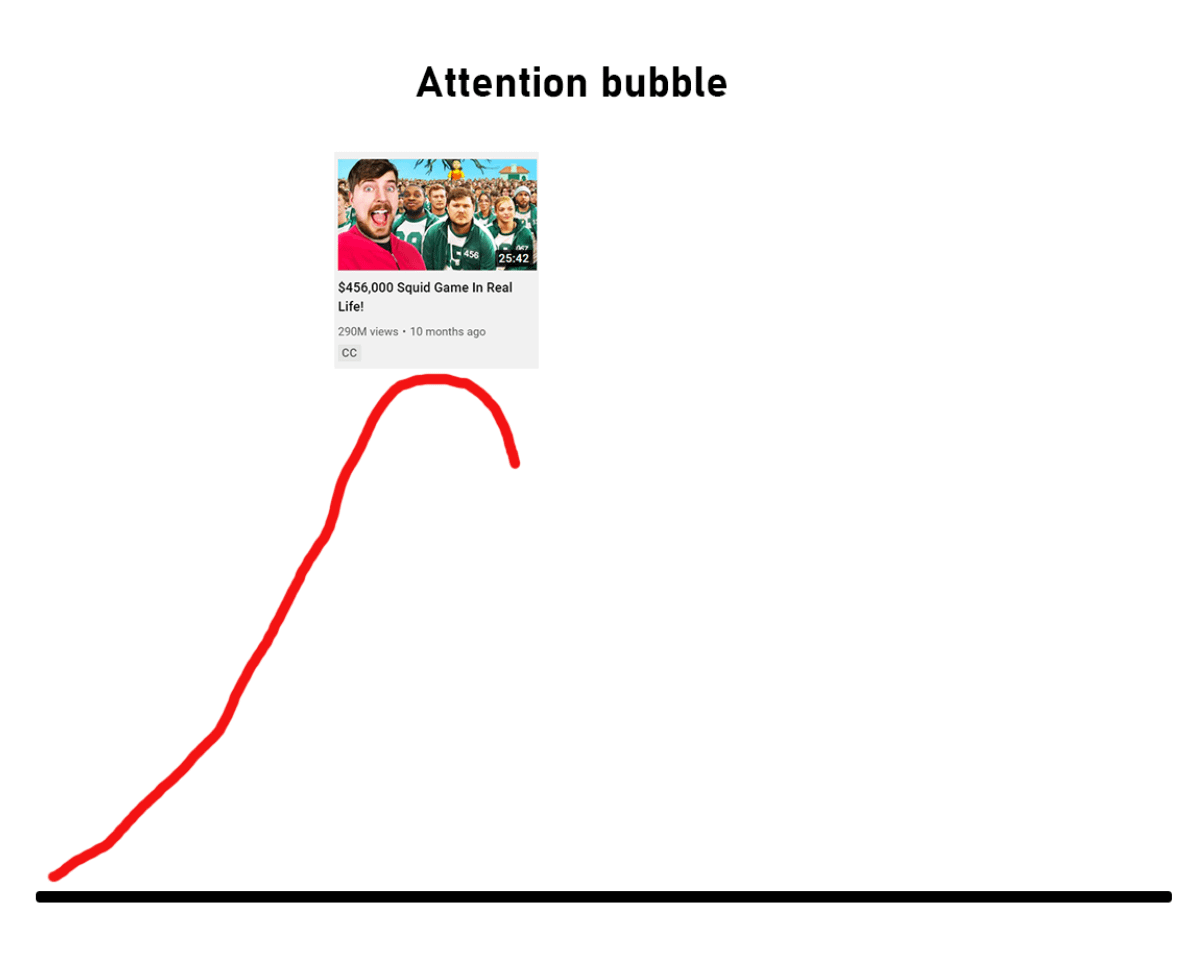 By becoming his own competitor, @MrBeast created a bubble of attention that reached its all-time high and started to burst (in my opinion) with his Squid Game video.