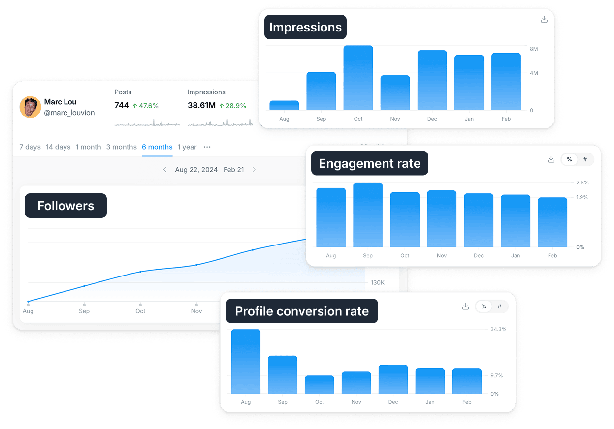 See detailed X (Twitter) analytics to improve your content and grow faster.