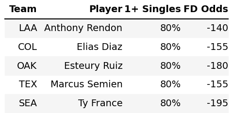 Another cool feature of the trends bot is that you can filter based on minimum hit rates. For instance, below, I filtered singles trends for all trends with an 80%+ hit rate.
