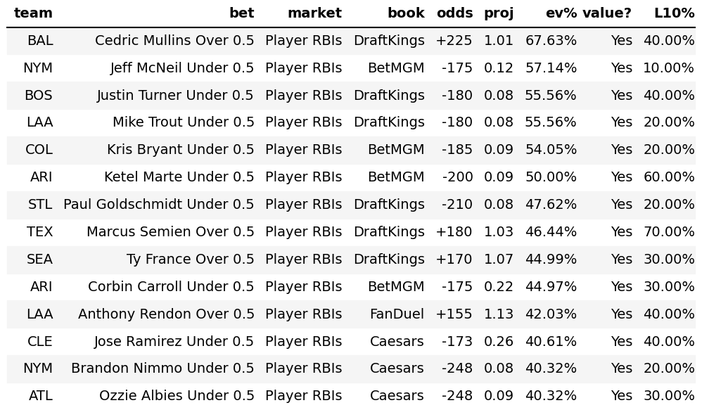 - Get EV% and Trends % tied with that prop