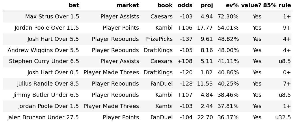 You also get the EV% which shows you how much value you are getting with the prop!