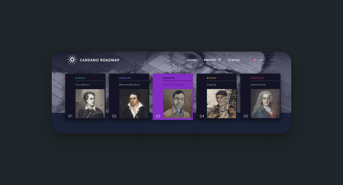 Cardano is in the 3rd phase 'Smart Contract', GOGUEN