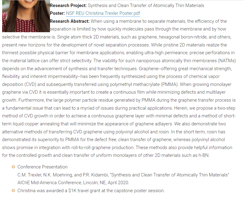 -vanderbilt: first place award at summer academy of science for my work w graphene. also received an award from the national science foundation.